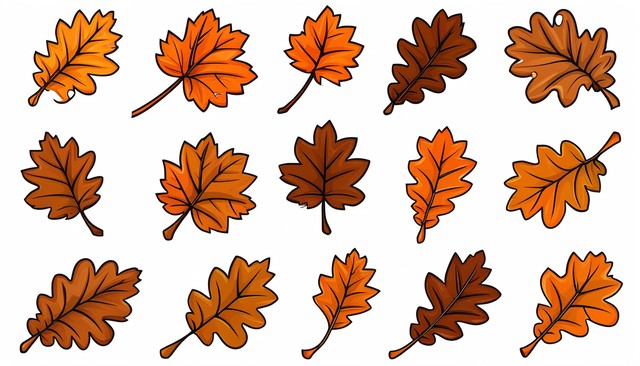 秋橡树叶矢量图标,卡通落叶,棕色干燥的树叶,设计元素,白色背景、标志或符号上孤立的自然物体。线条艺术