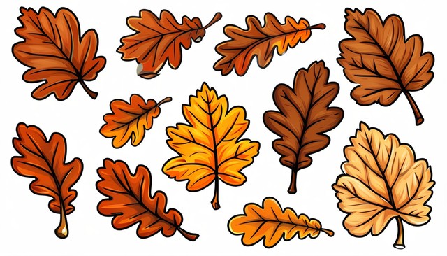 秋橡树叶矢量图标,卡通落叶,棕色干燥的树叶,设计元素,白色背景、标志或符号上孤立的自然物体。线条艺术