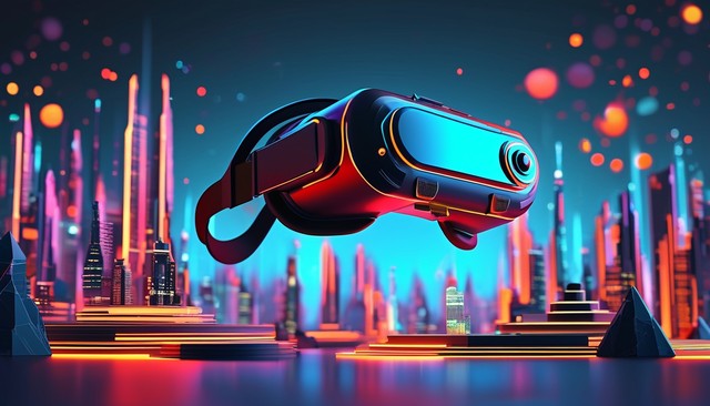 虚拟现实眼镜。用于在虚拟现实中建模元宇宙的未来数字技术的概念。矢量插图。
