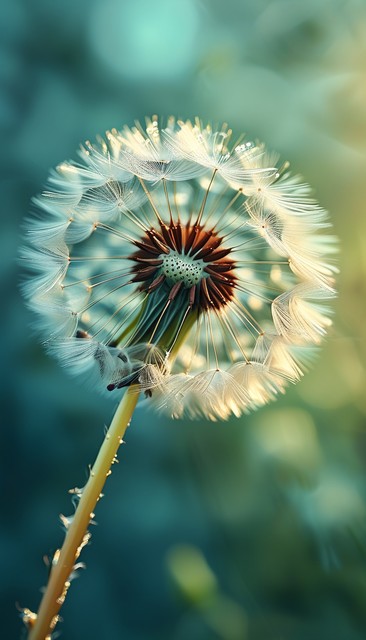 自然光横幅上蒲公英特写,艺术自然特写。春夏背景。梦幻大自然宏观,花卉植物。抽象柔和的蓝绿色季节性野花