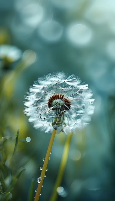 自然光横幅上蒲公英特写,艺术自然特写。春夏背景。梦幻大自然宏观,花卉植物。抽象柔和的蓝绿色季节性野花