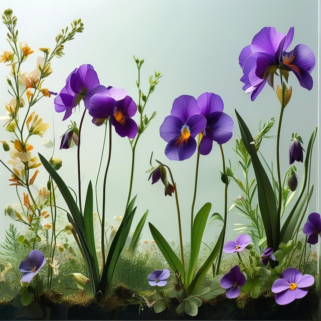 花坛中的紫罗兰剪贴画,植物剪贴画,自然剪贴画,孤立在透明背景上