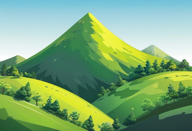 透明背景下逼真的卡通青山。夏季景观元素。最小的自然可爱的组成。矢量插图。