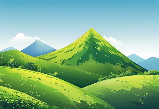 透明背景下逼真的卡通青山。夏季景观元素。最小的自然可爱的组成。矢量插图。