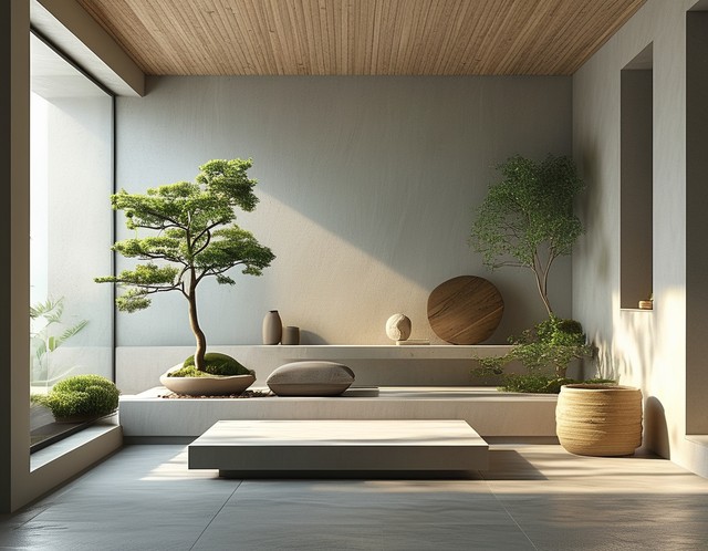简约的室内空间装饰,展示了自然元素与和谐的设计。