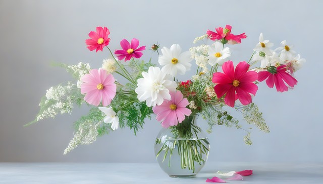 优雅花瓶中的鲜花盛开,室内装饰展现现代自然之美。