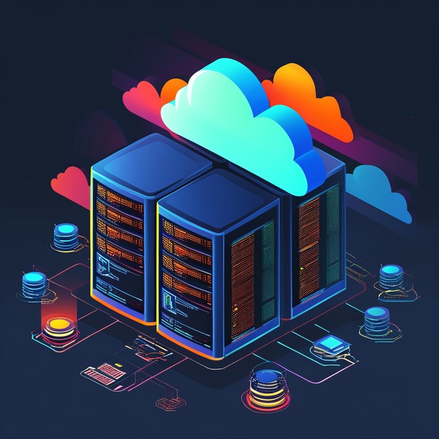 云计算。具有数据传输的数字服务或应用程序。网络计算技术。未来服务器。数字空间。数据存储。矢量图解