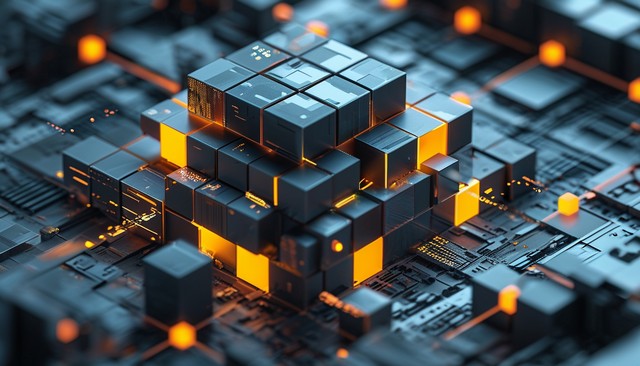 新兴技术概念。抽象的未来立方体设计和不同的几何形态。数字创新和人工智能。区块链技术。等距视图中的矢量