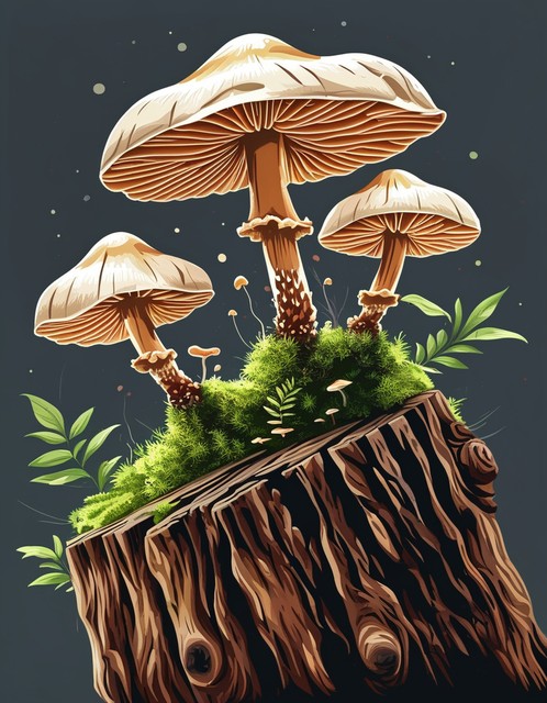 旧木本上蘑菇的剪影。自然和植物概念矢量