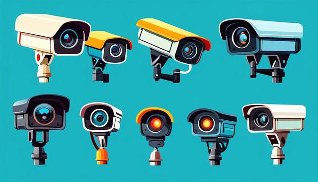 闭路电视摄像机图标,闭路电视视频保护警报,矢量插