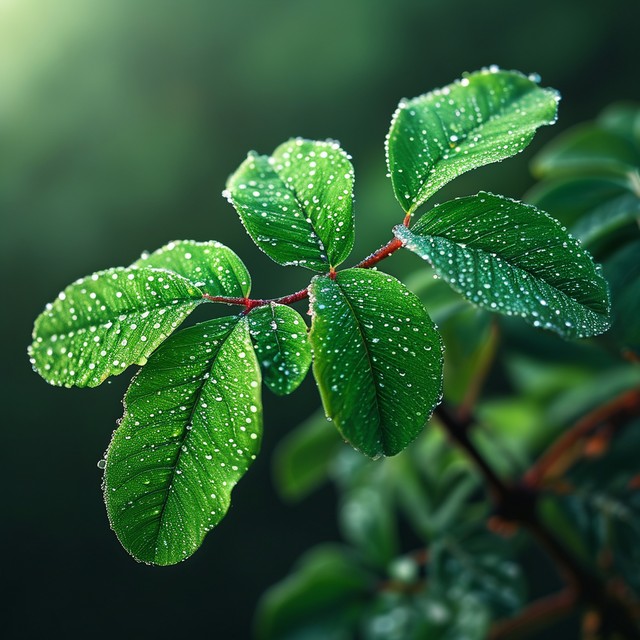 清晨露珠覆盖的绿叶,展现出自然的生机与美丽。