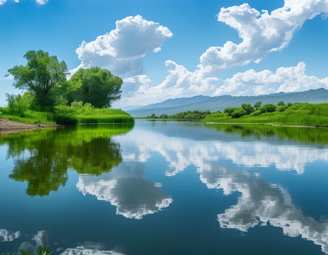 湖泊河流水面倒影绿洲天空云朵自然风景背景