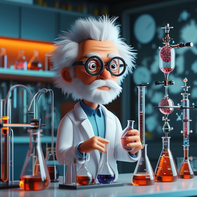 3D插画实验室里有科学设备的科学家