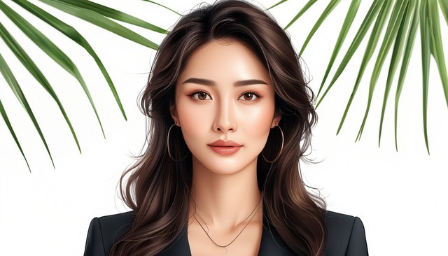 白色背景工作室上美丽的亚洲女商人肖像