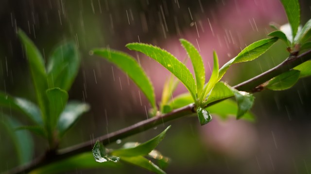 绿叶雨后雨滴水珠