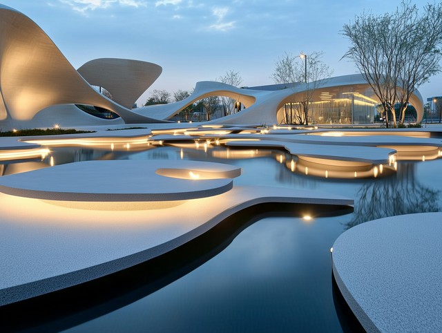 现代极简风建筑设计,起居空间的自然元素运用和宏大背景的空间构造
