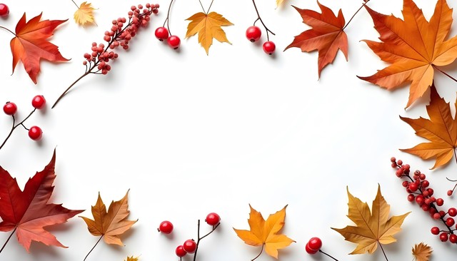 秋叶与红果的静谧边框秋季自然元素的精美构图