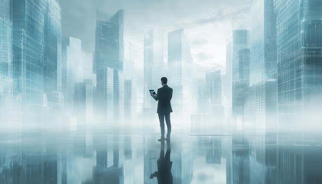 未来都市的商务人士