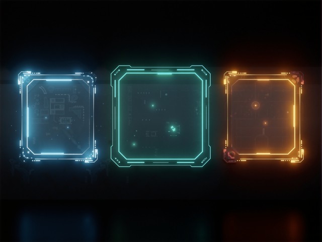 【AIGC】未来数字界面发光的蓝色绿色和橙色显示技术