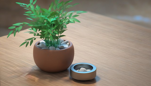 静谧木桌上的绿植与烟灰缸,融入自然元素的室内空间