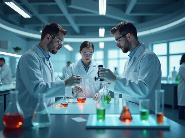 【AIGC】一群科学家在先进的实验室中进行化学实验观