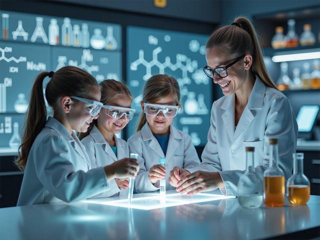 【AIGC】一群儿童和一位成年人在互动学习科学实验