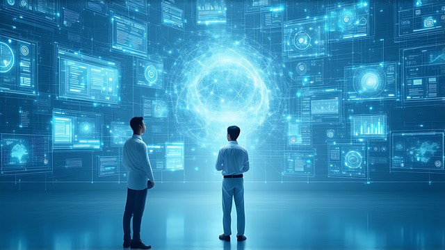 赛博朋克风格的夜晚,计算机技术连接着数据与创意。