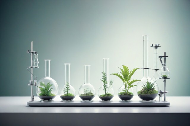 :实验室 烧瓶 植物 艺术装置 绿色植物 科学 实验器具 主题