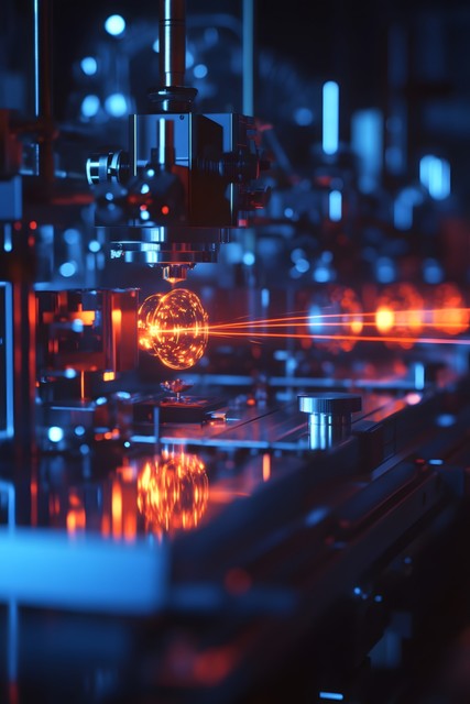 黑暗实验室中激光划过的光影