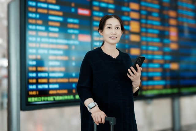 现代旅行者在机场查询航班信息