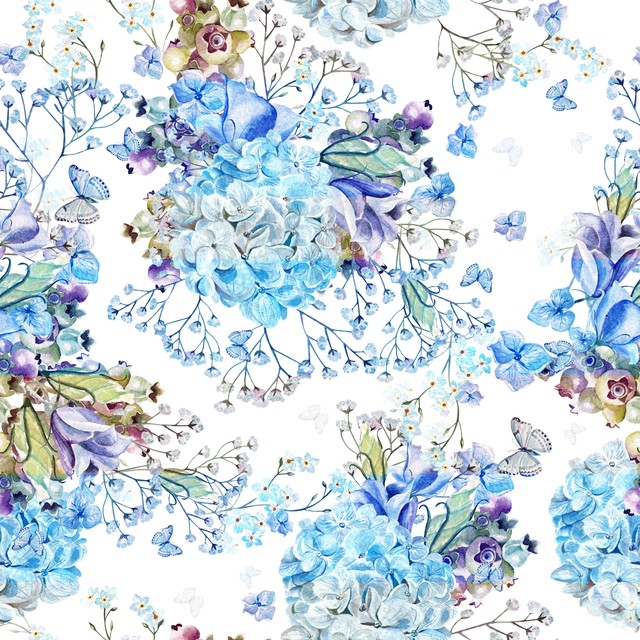 美丽的水彩图案,有桉树树枝和绣球花,eustomiya,野花,萨斯卡通浆果。插图…美丽的水彩图案,有桉树树枝和绣球花,eustomiya,野花,萨斯卡通浆果。