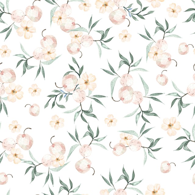 树叶和桃子水彩无缝图案。插图。树叶和桃子水彩无缝图案