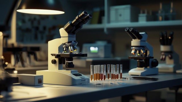 实验室中的显微镜和试管