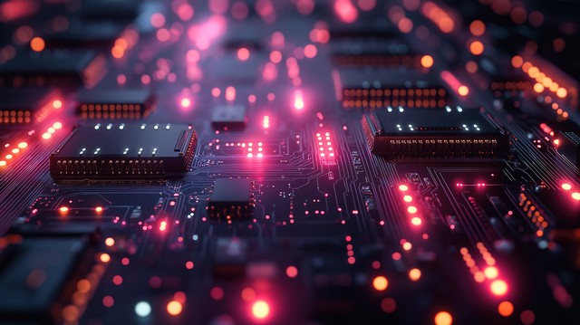 带有霓虹灯的未来发光电路,象征着先进技术和数字创新