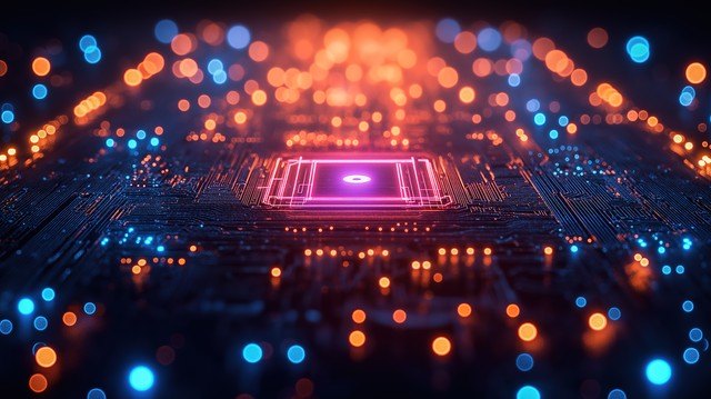 带有霓虹灯的未来发光电路,象征着先进技术和数字创新