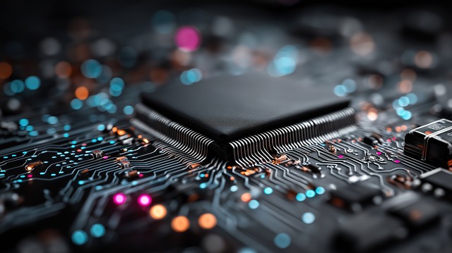 带有霓虹灯的未来发光电路,象征着先进技术和数字创新