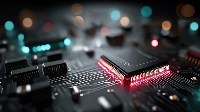 带有霓虹灯的未来发光电路,象征着先进技术和数字创新