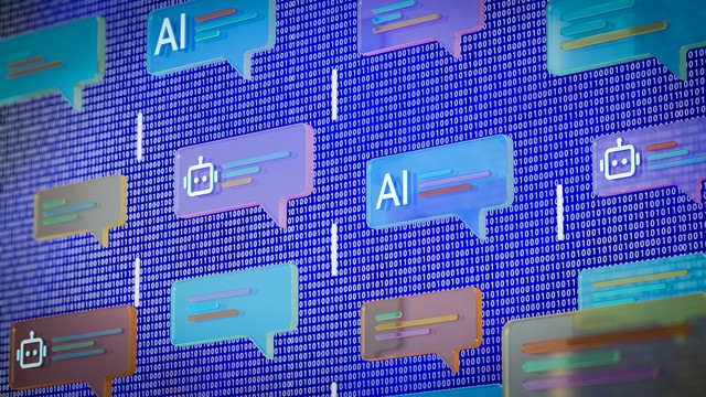 适合科技相关展示的AI主题对话与二进制代码的数字织锦