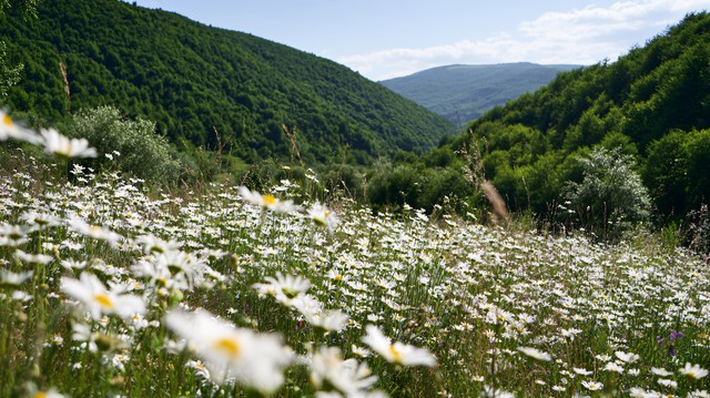 山间盛放的雏菊风景,草地,自然