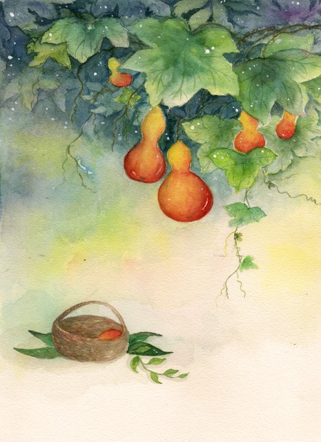 自然四季风景秋天园艺宝葫芦瓜果竹竹篮秋篮藏福竹篮秋趣葫芦坠秋光清秋果蔬图秋日瓜瓞满篮葫芦藤下秋意闲