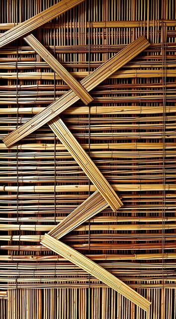 手工编织的竹条与木条,纹理清晰,自然材料造就独特装饰元素。