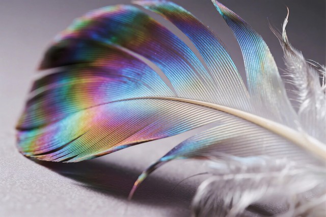 色彩绚丽的单支羽毛特写,色彩斑斓,自然元素