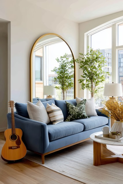 蓝色沙发与自然元素的完美结合