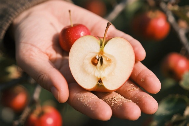 手捧切开的苹果与红苹果,切开的苹果,自然