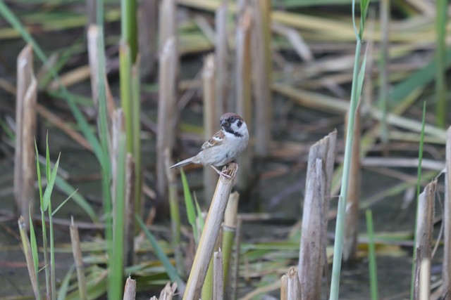 秋日北京,麻雀在芦苇上玩耍,眼睛明亮轮廓清晰,羽毛层次分明鲜艳亮丽,样子美丽可爱