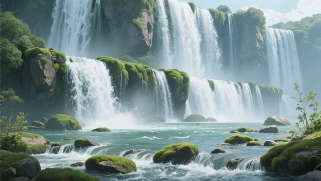 壮观美丽的自然瀑布景象,自然景观,绿植