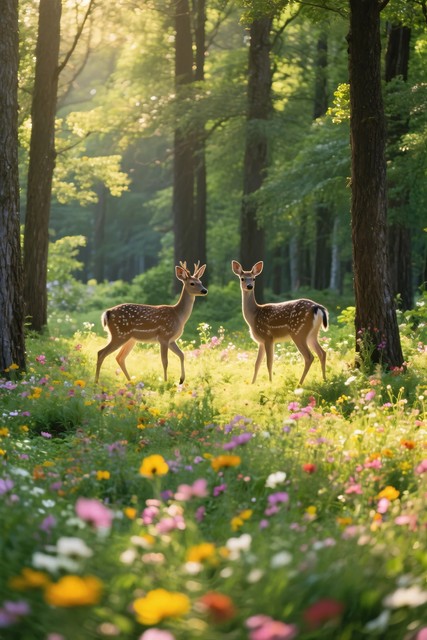 森林花草中鹿的自然风光,自然,自然风景