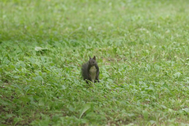 秋日北京, 魔王松鼠在草地上觅食,眼睛明亮轮廓清晰,皮毛层次分明鲜艳亮丽,样子滑稽可爱
