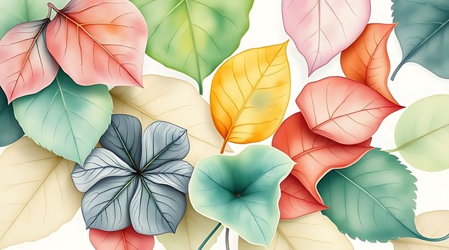 彩色树叶,自然元素,叶脉清晰,展现艺术之美。