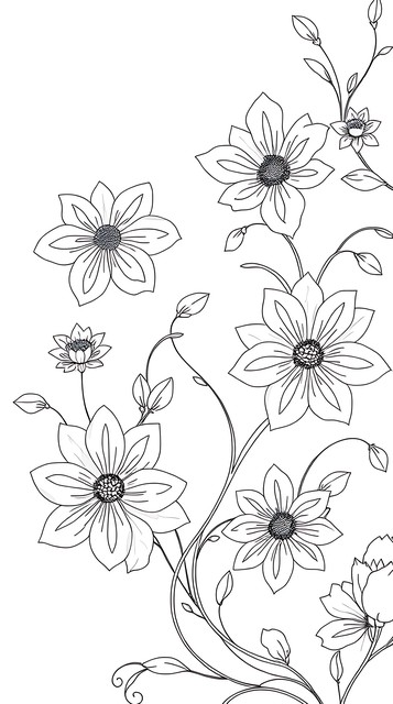 黑白线条勾勒出细腻的花卉和藤蔓,自然元素装饰图案中透露着生机。